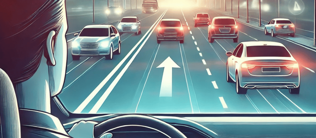 👀 Scanează constant traficul – Fii atent la mașinile din față, lateral și spate.